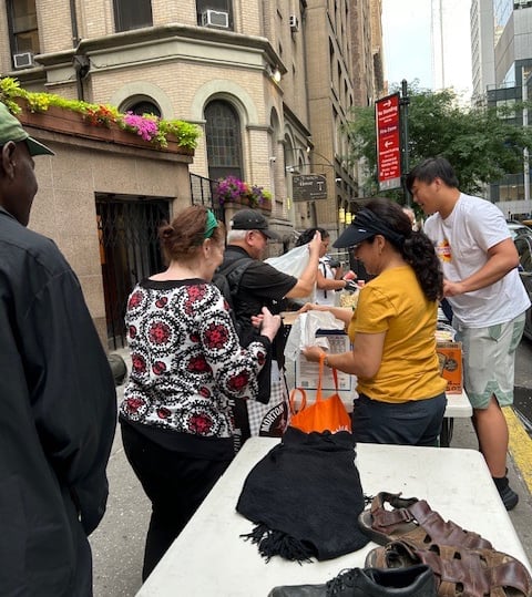 Non perishable food items and socks were offered along with hot drinks and cookies provided by the IAHH. Despite the rain, volunteers distributed 70 food bags on West 31st between 6:30 - 8pm.