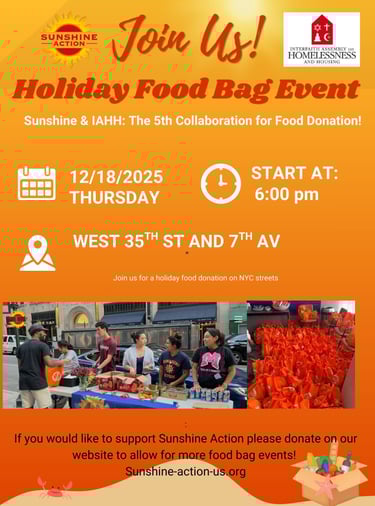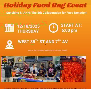 In collaboration with students at the University of Pennsylvania and our Sunshine Ambassador Freddy Liu, 100 food bags were packed and donated at Christ in the City to support the homeless. Thank you to everyone who helped make it possible!